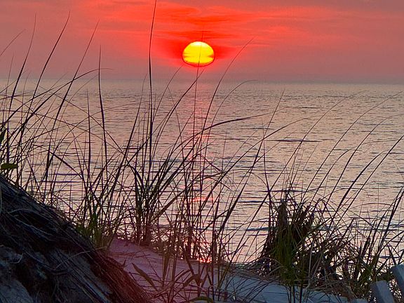 Beach chairsHardwood floorsBeach towelsStainless appliancesPatio with dining tableWhite slipcover sectional
