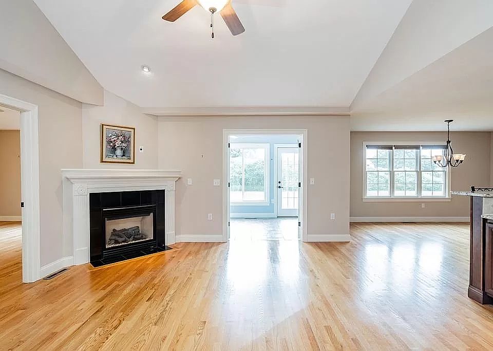 Located at the entrance to Rosewood Estates, an active adult community for ages 55 and up, this ranch style condex was built in 2009 and has two bedrooms including a primary with on-suite bath and laundry room, walk-in closets, a second bedroom with vaulted ceiling with large windows and transom above, an additional full bathroom and open concept kitchen with breakfast bar, living area with gas fire place, and dining area. Plus, there's a sunroom off the living area with double French doors that leads out to the Trex deck overlooking a private back yard for your enjoyment. Features also include vaulted ceilings, hardwood and tile flooring, granite counters with tiled backsplash in the kitchen, gas fired heating with central air conditioning and attached two car garage.