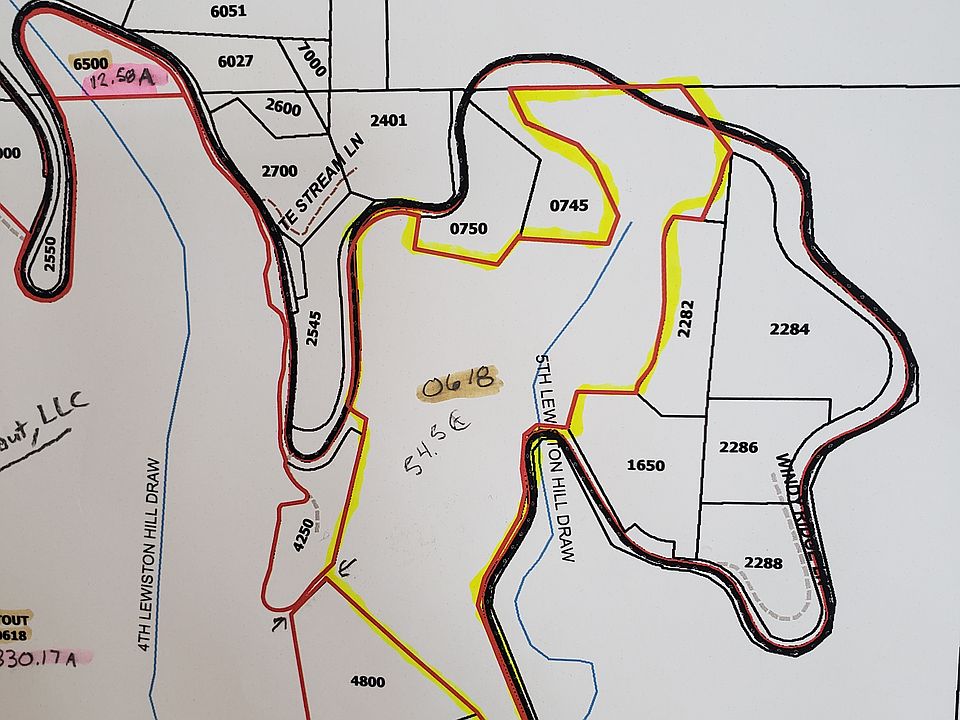 Approximately 54 acres on Spiral Hwy. 2 water sources available. Potential vineyard, homes or development property. Will need to be surveyed.