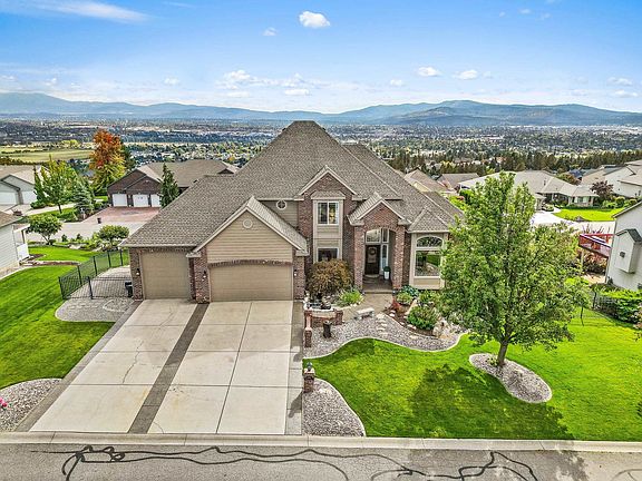 Grand Northwood Home, boasting Stunning Views and Bowling Alley! Nestled on a nearly half-acre landscaped lot with a serene water feature, this home captivates with 17' ceilings and gleaming hardwood floors. The chef's kitchen features custom cabinets, high-end appliances, gas cooktop and granite countertops. The main level includes a den/office, powder bathroom, formal dining, living room, and laundry. The primary bedroom is a private retreat with a deck, ensuite bathroom with quartz countertops, double sinks, jetted tub, separate shower, and walk-in closet. Upstairs houses 3 bedrooms and a full bath, while the basement accommodates 2 additional bedrooms, bath, outside entrance, wet bar, and TV/game room. The highlight is the two-lane bowling alley with ball return and automatic pinsetter. The home is well-maintained with newer furnace, hot water heater, fresh paint, and central vacuum system. Don't miss this opportunity to own a piece of Spokane's finest real estate! Your dream home awaits!
