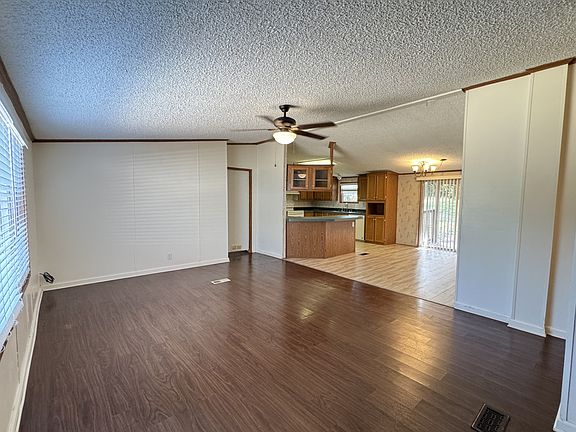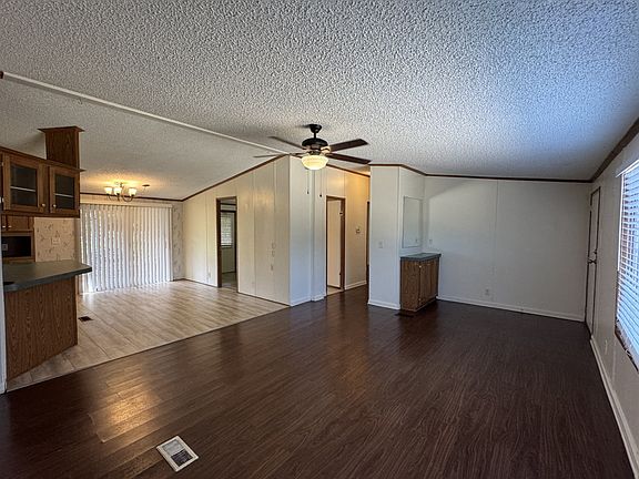 This inviting country home offers a spacious open floor plan ideal for relaxed, everyday living. The large living room features laminate flooring and flows into a bright dining area and functional kitchen perfect for gathering with family or friends. The kitchen includes essential appliances(as-is): refrigerator, stove with electric range, microwave, and dishwasher. A walk-in pantry offers plenty of storage, and the dining and kitchen areas feature new tile flooring for easy maintenance. Interior highlights include: Ceiling fans throughout the home, including all bedrooms and the living area, for year-round comfort.