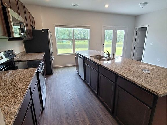 This two-story home has 4 bedrooms and 2.5 bathrooms. Immediately inside the entryway, the family room leads into the kitchen and eating area. A flex space behind the eating area can be used for on office or many other things. Upstairs are three spare bedrooms, two with walk-in closets, that share a full bathroom and a convenient laundry room. The primary bedroom connects to a primary bathroom and walk-in linen and clothes closets.