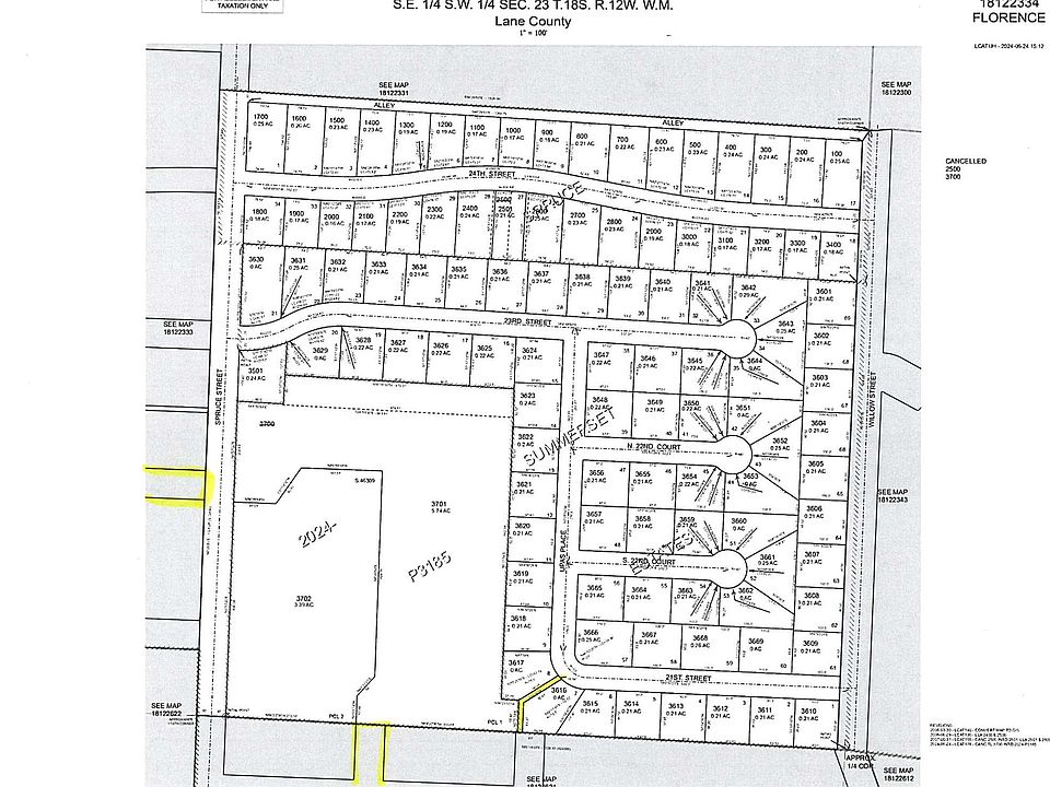 Newly partitioned 5.82 acre parcel in town with access off of Spruce and also 20th Street. Mostly cleared, level and ready to develop. Zoned Low Density Residential. 7,500 square foot minimum lot size.