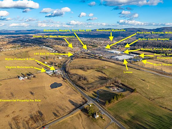 Excellent opportunity for business or manufacturers to develop a prime piece of property near the interstate and the town of Wytheville. Offering approximately 35 acres to be determined from a larger tract. Nearly level property has road frontage on Stafford Umberger Drive, US Hwy 52/N 4th St, and Fairview Road. Majority of the property is zoned M-1 Industrial and the balance as B-2, and in potential enterprise zone. All utilities (water, sewer, electric, gas) are available along Stafford Umberger Drive. Contact Listing agent for more details and with questions about varying property lines.