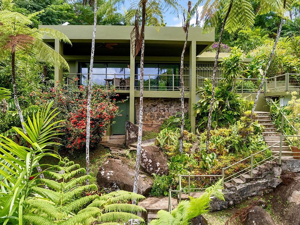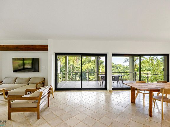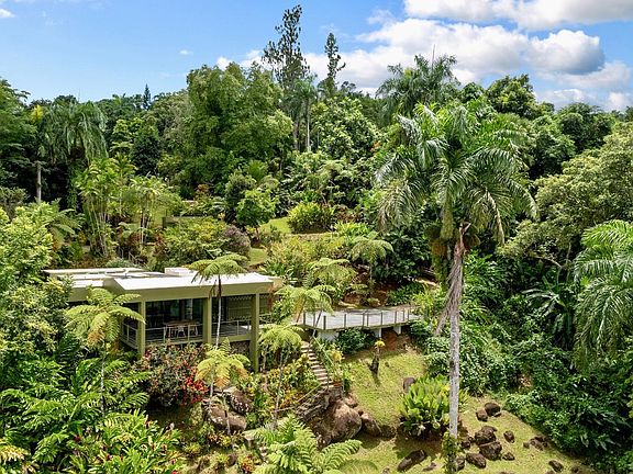 Embrace modern tropical living in this stunning 3-bedroom, 3-bath residence located in the lush hills of Mameyes II, Río Grande. Designed in a contemporary tropical style, this home features approximately 2,350 square feet of interior space and 1,500 square feet of terraces and balconies, offering seamless integration between indoor and outdoor living. Expansive glass panels and open-concept spaces invite natural light and panoramic views of the surrounding rainforest, while multiple terraces provide ideal settings for entertaining or peaceful relaxation. Set on over 3 acres of vibrant greenery, this tranquil retreat offers privacy and serenity just minutes from El Yunque National Forest, Río Grande’s pristine beaches, and local dining. Perfect as a primary residence, vacation home, or income-generating property, this home beautifully combines modern comfort with Puerto Rico’s natural beauty..