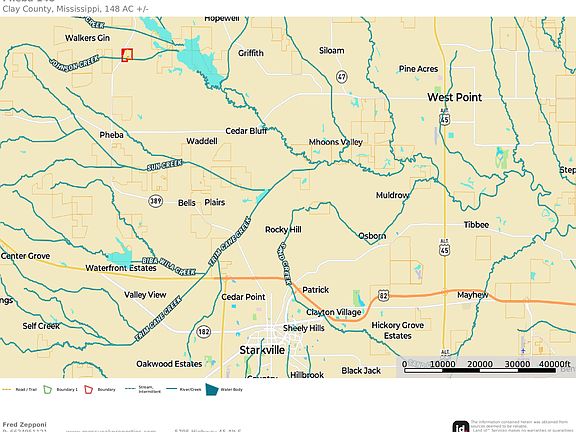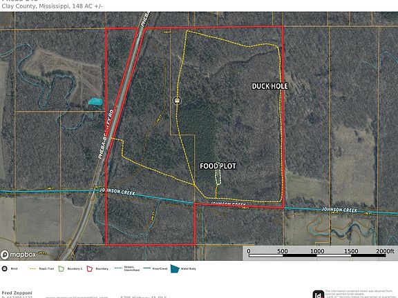 148 acres in Pheba, MS, only 25 minutes from West Point and Starkville. Johnson Creek borders the south side. Property includes 7 acres west of Hwy 389 and 141 acres east of the highway. Features hardwoods, pines, and excellent deer, duck, turkey, and small-game hunting. Includes a duck hole with a riser. Mostly flat topography with high ground outside the flood zone suitable for a cabin. Power, community water, and fiber internet available. Road frontage with easy access. Minimal interior roads, ready for development