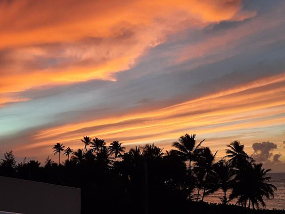 Experience true oceanfront living in this stunning three-level townhouse located in the gated community of Atlantic View Court, just west of Dorado. This 3-bedroom, 2.5-bath residence offers direct, unobstructed views of the Atlantic Ocean and overlooks a quiet, uncrowded, and surfable beach where the soothing sound of the waves becomes part of everyday life. The home has been thoughtfully remodeled, featuring a modern open-concept living area and a brand-new kitchen equipped with an induction cooktop with convection oven, dishwasher, premium refrigerator/freezer, and an additional deep freezer for extended storage. Ultra-premium tile flooring enhances the living room and common areas, complemented by a large pull-down screen ideal for a projector entertainment system. The layout spans three levels, with the primary ocean-view bedroom located on the top floor, offering breathtaking views of the breaking waves, as well as an oceanfront office perfect for remote work with inspiring scenery. Three private terraces provide spectacular ocean breezes, sunsets, and abundant natural light throughout the home. Residents enjoy direct private access to a swimmable and surfable beach lined with coconut palms, often completely uncrowded, along with exceptional conditions for water sports such as windsurfing, kitesurfing, hydrofoiling, and swimming to the nearby offshore island. Community amenities include adult and children’s swimming pools, a gazebo, basketball court, controlled access, and two assigned parking spaces. HOA fees are approximately $177 per month, with annual condo insurance and CRIM taxes averaging $1,700 and $1,100 respectively. Short-term rentals are not permitted, preserving a peaceful residential environment. Ideally located in Vega Baja, this property offers the rare opportunity to enjoy oceanfront living at a fraction of the cost of Dorado beachfront properties, while remaining within convenient distance of major roads, schools, shopping, and dining. This is a truly exceptional beachfront townhouse with modern upgrades, multiple private terraces, and a serene coastal setting, shown by appointment only..
