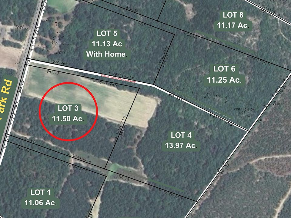 Lot 3 is available now with 11.5 Acres in Horse Country ready for your own building plans! 2 miles of future equestrian easements are planned for this new subdivision. Beautiful land with mature pines and oaks and approximately 4 acres of clear field that was previously used for a sunflower crop. Additional acreage is currently available. (94.12 acres in total are being subdivided into 8 lots.) Lot 3 is available now with 11.5 Acres in Horse Country ready for your own building plans! Equestrian easements are planned for this new development. Beautiful land with mature pines and oaks and approximately 4 acres of clear field that was previously used for a sunflower crop. A portion of tax parcel #225-00-09-009. Site plan and deed restrictions available. Please note: Mundy Meadows plat and deed restrictions are now recorded.