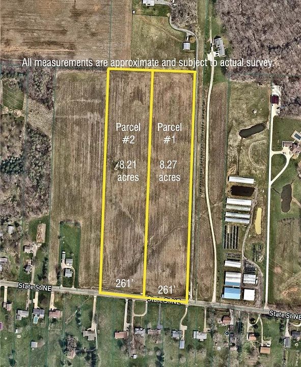 Exciting Land Auction - 16+ Acres Of Land Offered In 2 Parcels - Stark County - Lake Schools - Lake Township - Online Bidding Available - ABSOLUTE AUCTION, all sells to the highest bidder(s). ONLINE BIDDING BEGINS FRIDAY – MAY 21, 2021 – 12:00 PM and AUCTION LIVE ON-SITE BIDDING WILL BEGIN TUESDAY - MAY 25, 2021 - 5:30 PM. Real Estate offers 16 plus acres of level laying land. The property will be offered in two parcels, separate and then together, and will sell whichever way it brings the most. All mineral rights owned by the seller will transfer to the new buyer(s). Seller to retain 50% of the crop rent for 2021. The property is currently being farmed. Parcel #1: 8.27 acres of level laying ground with 261 feet of frontage. Parcel #2: 8.21 acres of level laying ground with 261 feet of frontage. TERMS ON REAL ESTATE: 15% down auction day, balance due at closing. A 10% buyer’s premium will be added to the highest bid to establish the purchase price. Any desired inspections must be made