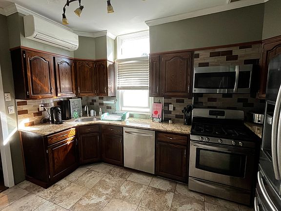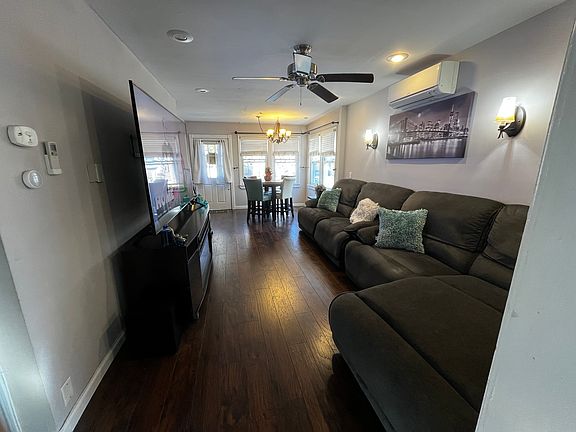 New floors throughout. Main apartment in 3 family home. Tenant below and above this apartment. Master bedroom (19x10) has ample closet space and many smart home features. Includes built in fireplace and TV. Spare bedroom (10x10)with large closet. Driveway parking included as well as backyard. Mini-split AC and gear in each room. Full kitchen with large refrigerator and breakfast bar. Full bathroom. Low electric bill in the summer if any (due to solar). Can be rented with the basement as well for an additional $900additional bedroom, bathroom and living area with kitchenette.