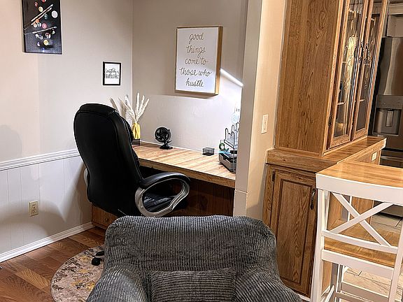 Office spaceGame roomAttached garagePorch with outside furnitureDining roomFire pit
