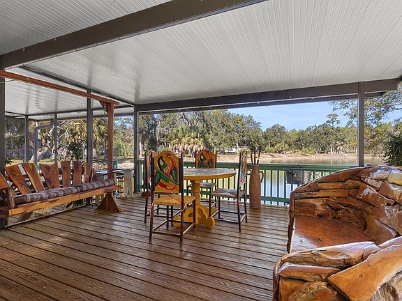 Discover your perfect coastal retreat at 340 NW Roys Rd in Steinhatchee! Situated on 3.96 acres, this charming 2 bedroom, 1 bath home offers over 1,500 sq ft of living space with vaulted wood ceilings and an open floor plan. The kitchen features a large peninsula with plenty of cabinets and counter space, perfect for casual dining or entertaining. The living room has a wall of windows overlooking the peaceful pond, filling the space with natural light. The spacious laundry room and separate storage room is conveniently located just off the kitchen. The front porch overlooks a peaceful pond ideal for morning coffee or evening sunsets. The property also includes a small storage barn and a 70 45 ft metal barn/workshop with power and plumbing, and part of the space could easily accommodate a bathroom addition. On the front side of the property sits a single-wide home and an RV hookup, offering great potential for extra income.. Whether you're looking for a full-time home, weekend getaway, or investment opportunity, this property offers flexibility, functionality, and the best of Steinhatchee's small-town coastal charm.