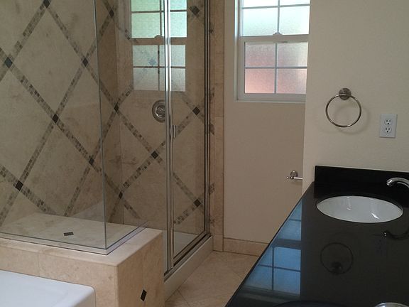 All baths and kitchen feature solid wood cabinetry, granite countertops and travertine tile.