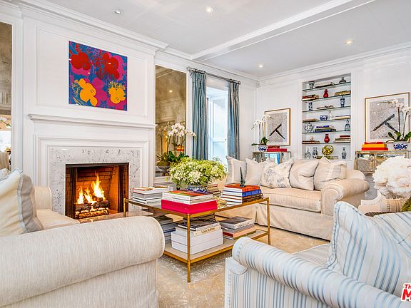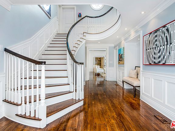 Prime East Gate lower Bel-Air, this 6Br, 8Ba., 6627 Square Feet, elegant, traditional home designed by famed Hollywood architect James Dolena sits on almost an acre behind double private gates on a quiet cul-de-sac off Stone Canyon Road. With unsurpassed privacy and an open floor plan, it's perfect for entertaining or day to day family living.Formal entry/foyer with a grand curved staircase, screening room, guest bedroom, light airy sun room, and a spacious living room with beautiful original crown moldings and many custom details. Pocket doors separate the living room from the beautiful formal dining room that's framed with gorgeous hand-painted French wallpaper. Open concept chef's kitchen opens to a large comfortable family room. A serene Master bedroom suite with fireplace and spacious walk-in dressing rooms and a balcony that overlooks the secluded infinity pool and flat grassy backyard. A light bright sitting room separates the master from three additional bedrooms.