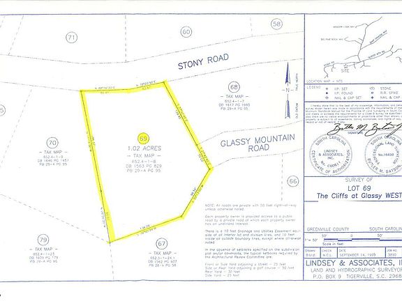 Come home to The Cliffs at Glassy, The Cliffs’ original gated golf and wellness community atop Glassy Mountain in Landrum, SC. This build-site is situated in the middle of million dollar homes on Stony Road, the most sought out address at Glassy, and it is just feet away from the famed 13th Hole Par 3 which has 60 mile views. Mature hardwoods add privacy to this level property. Under-brushed, extremely walkable, and super easy roadside access. This homesite also offers southern facing seasonal views. A Cliffs Club membership is available with the purchase of the property.