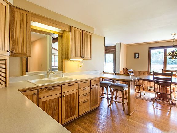 Truly a woods and water paradise! This 2 bedroom, 2 bath home features over 2000 ft of shoreline on private Horseshoe Lake and 45+/- acres of woods. Deer and wildlife abounds, and a variety of fish can be found in the quiet private lake. Fully insulated four car garage with workshop and heated office. Additional three car garage with generator hook-up. Home features a vaulted ceiling, updated hickory kitchen, Anderson windows, gas log fireplace, 200 amp service, cedar closets, laundry room, and plenty of storage. Private and peaceful, this property is a rare gem in lower Michigan. (Please no drive by's of property. Must be accompanied by agent at all times.)