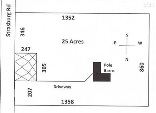 25 Acres with woods and tillable areas. Gravel drive 600' into property and 2 pole barns. Pole barn is 60'x 100' with a dirt floor. The workshop is 32'x 53' with a cement floor that has been prepped for heat and is insulated with electricity & Well. The split has been completed. Taxes have yet to be determined.