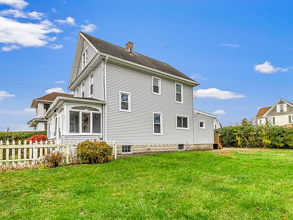 Ideally sited less than a mile from the train and a hop skip and a jump to the schools, this charming home makes life easy! The enclosed front porch is a lovely introduction in to the warm and welcoming entryway that opens into a cozy living room with wall to wall carpet and a bowed wall of windows. The formal dining room is ideal for entertaining with a bowed wall of windows and a ceiling fan. The eat in kitchen is the perfect place for gatherings and leads to a mudroom and a full bathroom on the main level! The 2nd floor has 2 bedrooms and a third flex space perfect for4 a reading nook or yoga space with stairs to a 3rd floor with 2 flex rooms that could serve as bedrooms, office space, craft rooms....your imagination is the only limitation! Brand new natural gas hot water heater. Gas stove. Oil heat. The town has this as a 3 bedroom 2 bath Colonial....floor plan room descriptions are how the sellers were utilizing the space.