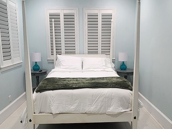 On the first floor, you have a large open concept kitchen and living room with a large 85 TV. You also have 2 bedrooms with queen size beds and large televisions and walk-in closets.On the second floor, you have a main suite with a king size bed and a large 85 television with a walk-in closet, large rain shower and a bath tub. In addition, you have 2 separate bedrooms upstairs, and a theater room above the garage.Outside you have a 2 car garage as well as ample parking for an RV or 3-5 cars. In the back yard, you have a heated pool, a covered grill, a small beach for the kids to play, and a large open area for events.This gem is just a short drive from both the beach and downtown Stuart, where you can explore local boutiques, savor waterfront dining, and experience the vibrant coastal charm.Please note that there are cameras at the front exterior of the house, pointing towards the gate and parking areas.