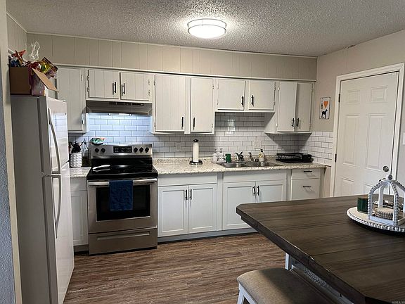 This move-in ready home features a new HVAC unit, water heater, and roof in 2022. In the kitchen find new appliances and new counter tops. Throughout the home find luxury vinyl flooring and new light fixtures. Outside find a storage room under the carport and a large backyard with a covered patio and a concrete slab. The plumbing system to the city sewer has been professionally redone.
