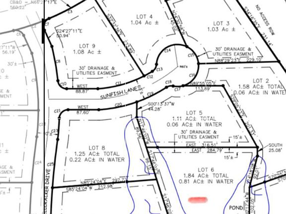 Lot 6: 1.84 Ac. +- with .81 Ac.+- in water. Total of 219.86 ft. on Summerour Road with 41.61 ft. total road access on Summerour Road.