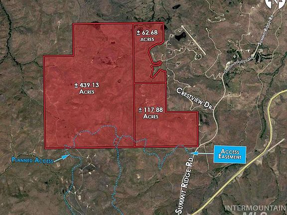 This gorgeous view property can be sold as ± 619.69 acres or smaller acreages see flyer in docs tab. Rolling hills and many springs with the added benefit of privacy and seclusion. Abundant wildlife, natural beauty and amazing views. Potential use for grazing land with horses and livestock. Only minutes from Eagle and the amenities of the Treasure Valley making it perfect for a PERSONAL ESTATE/RANCH or an UPSCALE RESIDENTIAL DEVELOPMENT with much of the planning already completed.