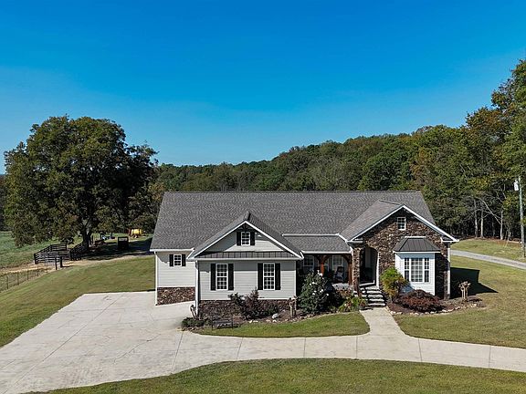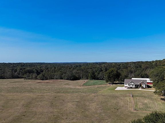 144-acre working cattle farm featuring a stunning 5,535 sq. ft. home. The property includes 4 barns, fenced pastures, and open fields — ideal for livestock, equipment, or hobbies. Slab Creek runs through the property year-round, providing a reliable water source and adding to the natural beauty of the land. Enjoy peaceful country living, incredible views, and room to roam. A rare find with endless potential — the house can also be purchased separately with 10 acres.