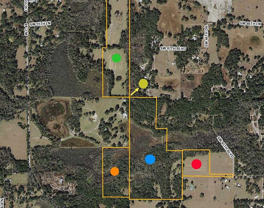 For Sale is the parcel designated with the GREEN dot which is approximately 28.5 acres. Four other adjacent parcels of land totaling approximately 111 acres are available as well. The acreage includes native pastureland, native woodland, and native wetlands. The parcel sizes are as follows: M03-024 (Green) has 28.58 acres (which does not include the existing residence and the approximately 10 acres that it sits on), Parcel M11-005 (Blue) is 61.50 acres, Parcel M10-002 (Yellow) is a 10’x10’ piece of land that connects parcels M03-024 & M11-005, Parcel M10-003 (Orange) is 39 acres, and Parcel M11-062 is 10.4 acres. All acreages are approximate and is to be verified by a surveyor. The seller is willing to divide parcels if necessary.