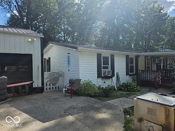 Three bedroom, single bath on 1.26 acres. Two large pole barns plus a lean-to, beautiful yard and nice pond
