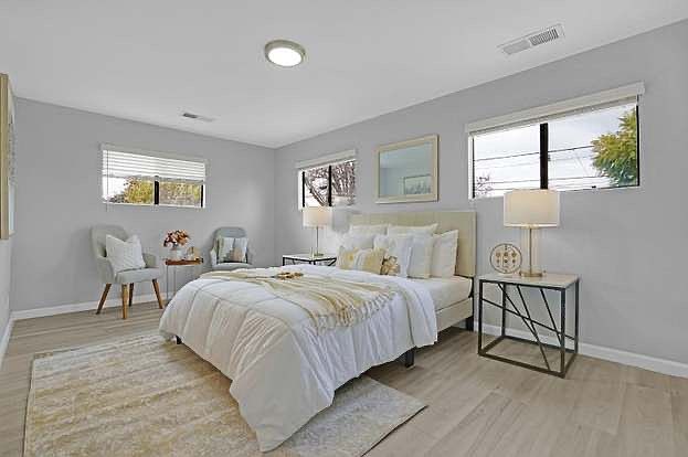 Master bedroom suite upstairs (largest in house, with private bathroom) in Sunnyvale will be available on 9/1/2025. The entire house was newly remodeled (remodeled about 4 years ago). Very close to many top companies in area. Central heat and A/C, and a fantastic floor plan! Looking for a working professional or recent graduate to enjoy the quiet neighborhood, and the convenient and private space. About 1.2 miles to Downtown Sunnyvale. Preferably 12-month lease, nonsmokers/no pets. - Close proximity to all major Highways and roads - 101, 280, 237, 85, Central Expwy, Lawrence Expwy - Located within 10 miles of Apple, Facebook, Google, eBay, Linkedin, Nvidia, AMD, Synopsis, Applied Materials, and many more companies - All current tenants are friendly young professionals Rent: $1500/month. Utilities will be split by all the tenants. No bedroom furniture is provided (the furniture in the pictures for staging only). However, furniture in the common area is provided (different from that in the pictures). No smoking allowed inside the house. No pets allowed. There is an attached garage for extra storage. Driveway has two parking spaces. Street parking is easy in the single-family house zone.