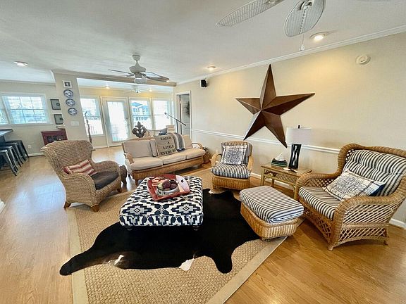outdoor sitting areas to take in the morning and evenings. Fully stocked kitchen with butcher block counter tops, island seating or large dining room table. Open- concept floor plan. Just a quick walk to to the beach with a convenient public beach access at our street entrance. Floating dock allows for all boats , kayak and paddle board lovers of the group . Laundry area is located on the ground level in the enclosed garage, not connected to stairs inside the home. Absolutely no pets or smoking allowed on this property.