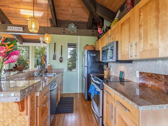 ***Hidden Gem In Princeville- Very Successful 15 year Vacation rental - 3 Story Stand alone detached building for ultimate privacy- New roof was put on 1 year ago. Post and beam construction. Reverse floor plan with living room and Kitchen top stairs to enjoy the ocean view. ***This unit is sold turn key with the option to take the future vacation rental bookings and income or to move in and make it your new home. ***Tastefully and uniquely decorated Hawaiian style with lots of upgrades. Great trade winds breezes so no need for AC. Cozy complex with large swimming pool. Just minutes to several beautiful north shore beaches beach and the Westin Hotel. *** This one of a kind beauty won't last long!