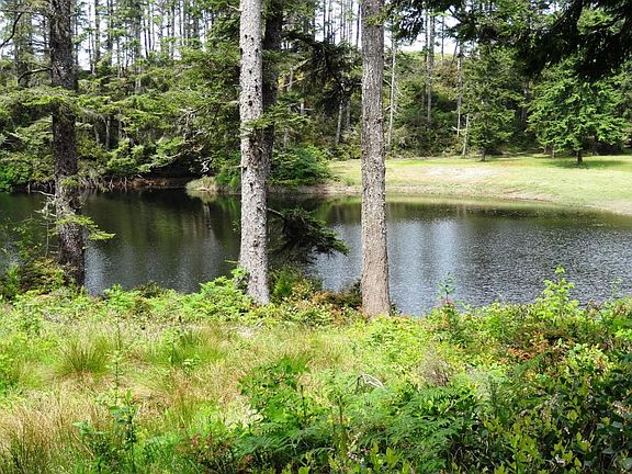 Tranquil lake front setting in a wooded wonderland near the beach and out of the tsunami zone. Unique 2 acre home site located on small lake. The lot is septic approved, and power and water are already installed. Lot is located in Wayward Wind Estates and features your own private gated entrance.