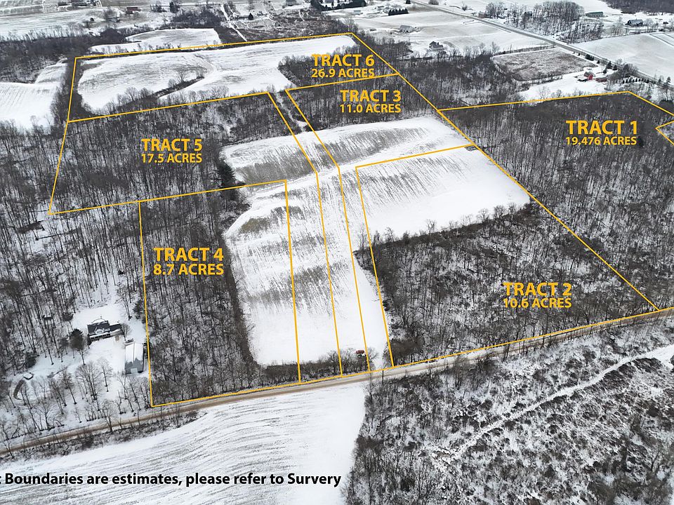 Live & Online LAND AUCTION - The RESERVE (Minimum Bid) is $8,000 Per Acre ($746,352). The bidding begins at 7:00 PM, Thursday March 5th, 2026. Live In-Person Auction Location: Table Rock Golf Club Restaurant (3005 Wilson Rd., Centerburg, OH 43011. BUYERS MUST SIGN ACKNOWLEDGEMENT OF TERMS to bid. Agents, please see 'A2A'. Tract 4 is a potential buildable home site containing 8.7 ± acres with 300 ± feet of frontage and suitable depth for a rural homesite. 93.294 ± acres located in Knox County, Ohio, being offered in a multi-parcel auction format with six total tracts ranging from 8.7 ± acres to 26.9 ± acres. This productive and well-maintained property features tillable acres, an abundance of wildlife, high-quality soils, and multiple potential building sites. This sale will be conducted as a multi-parcel auction, with all six tracts selling individually or in any combination. After the tracts are offered on an individual basis, the auctioneer will entertain subsequent rounds of bidding whereby buyers may combine tracts of their choosing at a higher bid value. Buyers may place bids on any individual tract, any combination of tracts, or the entire property as a whole, at any time until bidding is closed. The property will sell in the manner that produces the highest total price, subject to a combined reserve of $8,000 per acre. The seller will not pay any CAUV recoupment. Soil evaluations for Tracts 1,2,3,4,5, and 6 will be conducted on January 30th to determine the types of septic systems permitted on these potential home sites.