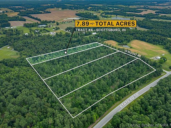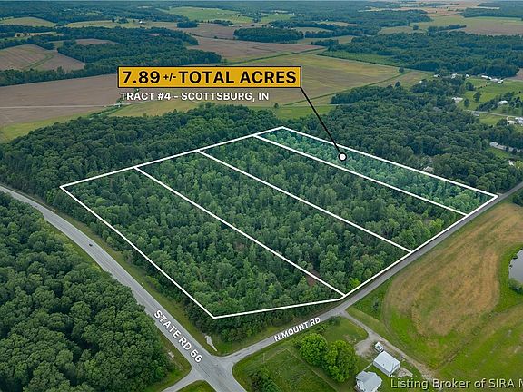 Tract 4 is 7.89 acres located off of 56 & North Mount Road just 10 minutes east of 65. Here you will find not only this tract of ground but 3 additional available properties as well. This wooded property offers water, electric & fiber at the road & would make a great place for your new home. Scottsburg itself is home to Hardy Lake State Park along with many other parks, caves & lakes. Columbus, Seymour, Bedford, Sellersburg, Madison, Bloomington & Louisville are each less than 40 minutes away!