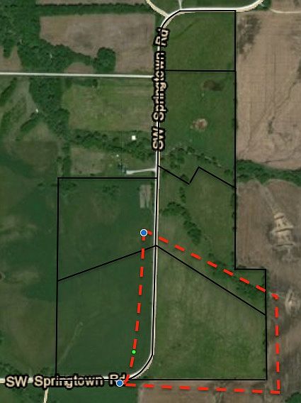 28 acres. Beautiful hilltop view. Northeast side of Smithville Lake. Overhead power lines on lot. County water line across the street. 7 miles Northeast of the W Hwy boat ramp at Smithville Lake. 3 miles South of Plattsburg MO on SW Springtown Rd. Has 1500 ft of frontage and is 1200 ft deep. Could be split into 2 lots. 1.5 miles to Little Platte River horse ridding trails entrance / parking lot. From 169, take W Hwy East 3 miles to J Hwy. Northeast 4 miles to Springtown Rd. North 2 miles to property on East side and North of Creek. White and blue for sale signs on fence. Go to google maps and type in: "sw springtown rd", for a satellite view or just click the "map" below. Happy to work with Buyers Agents. Email, or call between 9 am and 9 pm. Phone does NOT receive text.