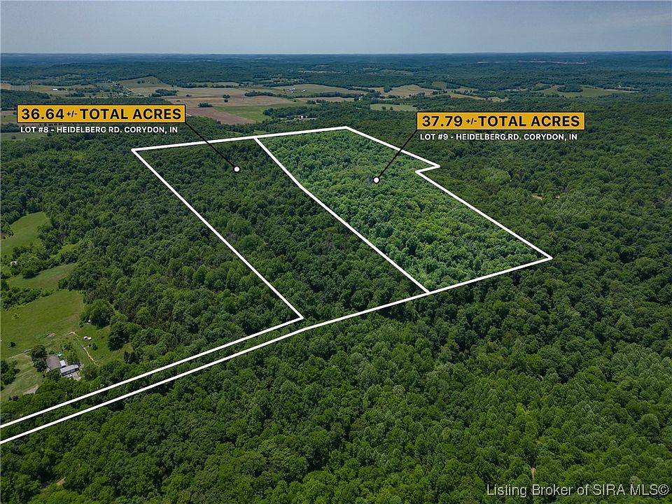 Tract 9: This breathtaking property is 37.792 acres and holds the second highest elevation point in Harrison county, giving it a million dollar view that could be yours! It is the perfect property for to build your dream home, hunt or use for recreational ground. There is city water, electric and fiber at the road. Great Location, just minutes away from state road 135 and 64, and within an hour from Louisville, Patoka Lake and many state parks & caves. Additional acreage is available, owner financing available, can subdivide further to immediate family & survey to be provided at closing. Lot 8 & 9 share a gravel road that intersects with Heidelberg Road