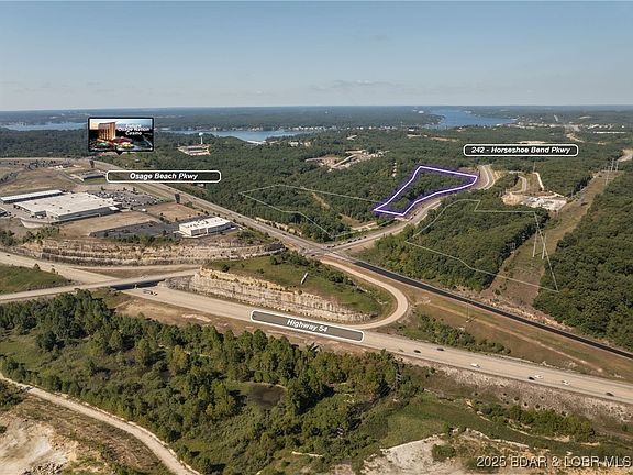A little over 7 acres zoned commercial with Hwy 242 frontage. In fact nearly 1000 ft of frontage with incredible visibility! With that visibility, the correct zoning, water, sewer and electricity all close, this is the perfect location for a commercial business park or many other commercial ventures. Hwy 242 is the future of Lake Ozark and this spot is centrally located close to Osage Beach Parkway and The Bagnell Dam Strip. Only seconds from Menards, Kohls, the movie theater and everything else yet to be built on Hwy 242. Tons of potential for varying business opportunities. If you want visibility and a central location, this 7 acres is something you need to check out. Lot is within the City of Lake Ozarks Tif district.
