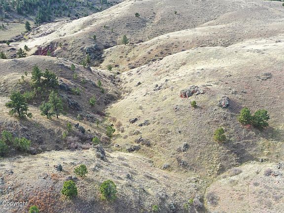 Looking to the west of this property, a section of state land borders the entire western boundary. Rolling hills for miles are visible, all the way to the Bighorn Mountain Range. A stand of pine trees is located on the north boundary of this property, where the land descends into a grassy-bottomed draw. A two-track road runs from the north, clear to the south boundary, making all 35 +/- acres accessible in a vehicle. The southern portion of this tract ascends to a ridgetop, home to several pockets of pine trees, and where deer bed regularly. Minor covenants are put in place on this property.