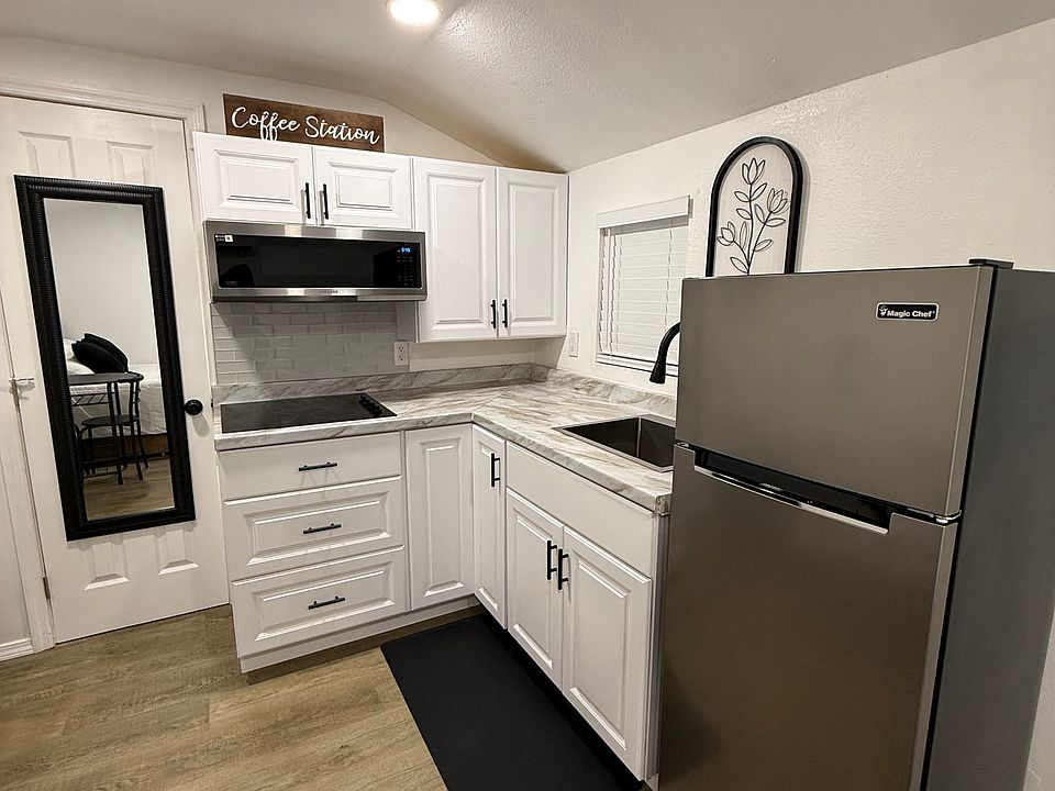 This cozy, newly furnished efficiency is located on the same property as the main house, where the owners reside. The space is thoughtfully arranged to maximize comfort, privacy, and convenience.