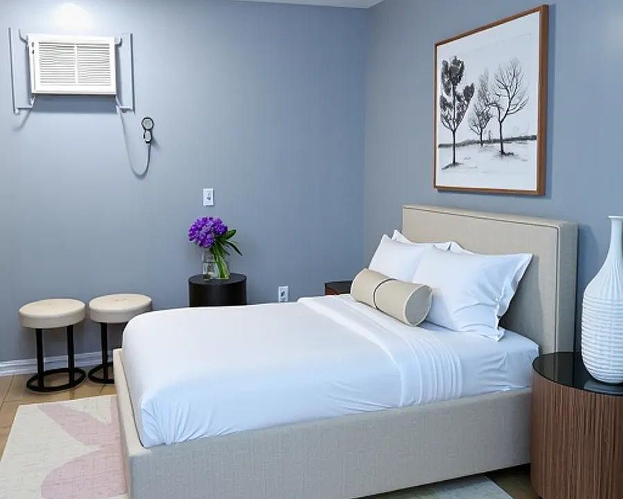 Comfortable room with your own private entrance. A large closet with you own private bathroom. The room also has extra amenities like a small fridge and its own microwave. A a soft comfortable recliner and a comfortable desk. Make this sweet room yours.