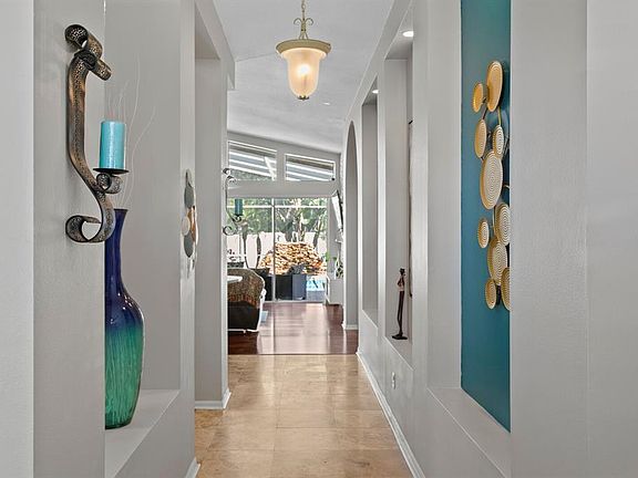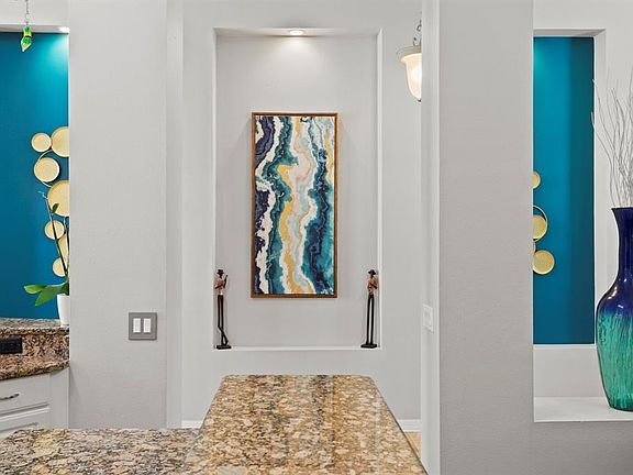 Screened pool areaGranite countersNew roofCustom rock waterfall featureExterior paintEnsuite bathroomGallery-style lit wall detail