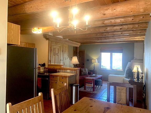 You'll love this beautiful, fully-furnished and turnkey townhome in the heart of Taos. In fact, it's so close to the Plaza, Kit Carson Park and all things downtown, you'll lack for nothing to eat, shop, see or do! Built in the iconic Pueblo style architecture but with Spanish accents; this 2 story, 2 bed/1.5 bath home has Saltillo tile floors, beautiful wood cabinets and doors, viga and tongue and groove ceilings, a wood-burning Kiva fireplace with seating so you can be close to the fire, tile showers, a washer and dryer and a small fenced patio. This is a warm and inviting space with everything you need to just move right in.