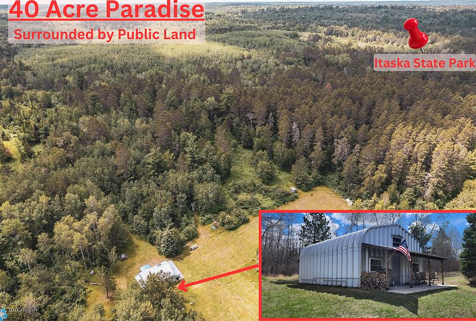 Here is your chance to own a little slice of the Majestic North woods. 40 Acres Surrounded by public land and Itasca state park. Cozy Steel Shell Cabin with Wood Stove Upper Loft Sleeping area as well as main floor bedroom, Newer 500 Gallon Propane Tank, Two New Enclosed Octagon Deer stands, LOBO's Bar restaurant just minutes away. Deer, Bear, Turkey, Grouse. Snowmobile, Ride your Mountain bikes, Side by Sides, This is truly a year round get away only minutes from the Headwaters of the Mississippi Headwaters. Owner/Broker