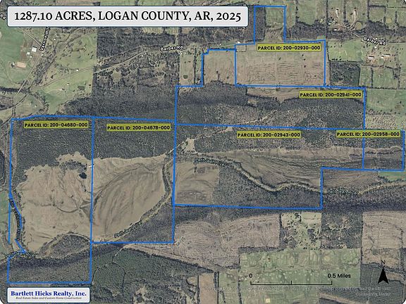This property is a rare find, spanning a substantial 1287 acres. I have explored the land thoroughly, and it truly is a hunter's paradise, featuring open fields along the Petit Jean River and backing up against the mountain. Currently, all the fields have been cut for hay. During our last visit, I noticed that the fields had just been hayed, attracting all kinds of wildlife. Quail would be a great addition to this property; in fact, there are already a few present, along with deer. The wooded areas also invite turkeys. Accessing the roads leading to, through and from the property is easy. Additionally, there are several sheds on the property that are used for storing tractors and hay. Just minutes from conveniences in Booneville. In the event you want to build your dream lodge, the site is only a hop, skip and a jump to Fort Smith shopping. Don't miss out on this opportunity, and as the country and western song says, "Buy Dirt." Last count on large round bales of hay was 835+