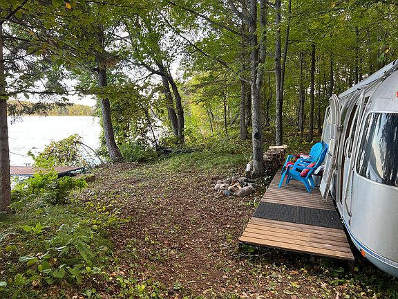 This magical lot is ready for your future build or “glamp” in this iconic 1985 Airstream that comes with the property. This private lot features 340’ of level rock/sand frontage and approximately 10 acres featuring a mix of mature hardwoods and pines. The driveway is a perfect meandering driveway all the way to the lake. Spend your afternoons dipping your toes in this pristine lake from the dock that also stays with the property! Enjoy the aerial video!