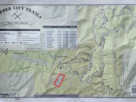 20.6 Acres with BIG SKY views of several mountain ranges. This off grid property is completely surrounded by BLM lands. Borders the Copper City Mountain Bike Trail System. Minutes to Three Forks, MT and I-90. Affordable land parcels close to Bozeman are hard to find! No covenants and Off Grid. Ready for your cabin or tiny home!