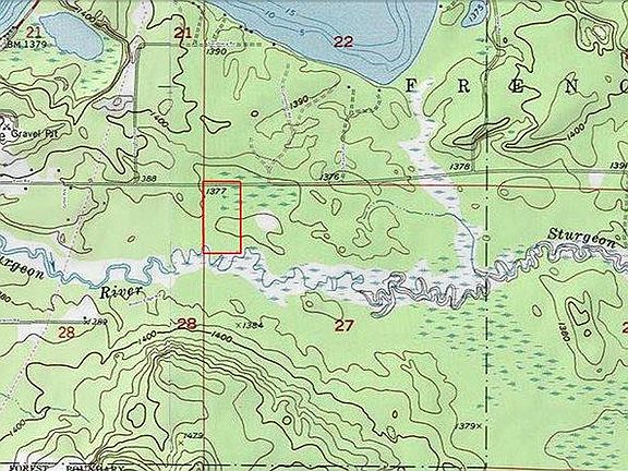 20 acres just outside Side Lake with some pine plantation. Snowmobile trail on the parcel making it a great starting point. Build your getaway overlooking the Sturgeon River. Parcel adjoins public land. PotlatchDeltic