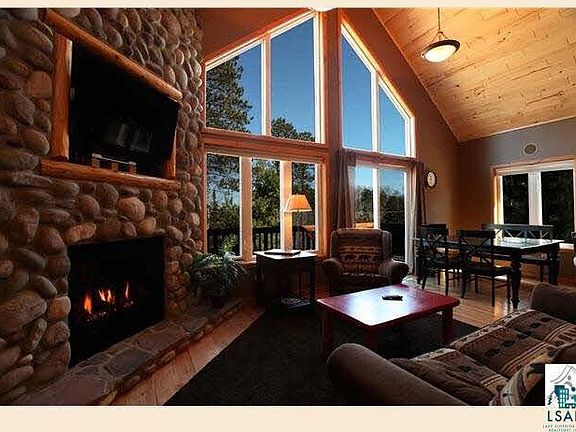 Immaculate Furnished Cabin At The Villas Of Giants Ridge Golf & Ski Resort W/Beautiful Views Of Blue Water & Ski Hill, Steps Away From Sand Beach & Dock! Stainless kitchen open to vaulted great room w/stone firepl & two story tall windows w/glass doors open to huge deck offering ski hill/sunset views in one direction & lake/sunrise/moonrise views in the other. Built 2004, 2068 SF, 4BR/3BTH, wood & carpet floors. Main flr bedrooms & bath. Upstairs, large loft w/bath. Downstairs, another large bedroom, bath & huge family room w/firepl & glass doors to private outdoor patio w/hot tub. Great home for entertaining or just relaxing, ideally located between championship golf courses, steps away from the lake, the pool, tennis courts, dining, Aveda Spa, Starbucks & near biking & snowmobile trails. City water, city sewer, central air. Top producer in optional rental pool. Click link for 3D tour!