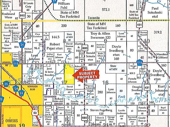75 acres includes good building sites within 5 minutes of shopping and medical facilities. Excellent access off county maintained paved highway. Only 6 miles from public access to Lake Vermilion. Great country living with all the nearby facilities of city conveniences.